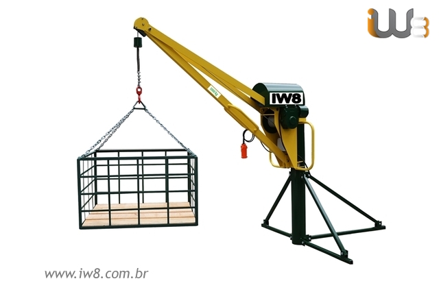 Mini grua Tripé para: 300kg, 500kg, 800kg e 1.000kg Guincho de Coluna para: 200kg, 300kg, 500kg, 800kg e 1.000kg Balde para 70L e 130L, Gaiola para 150kg e 300kg, Girica 130L
