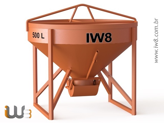 Balde 500L com Descarga Central utilizado para içamento via grua e movimentação de concreto para pisos superiores em obras da construção cívil, na concretagem de colunas, pilares e pisos, diminuindo o desperdício de matéria-prima e agilizando o trabalho com segurança.