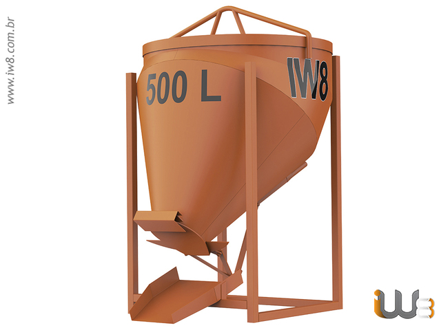 Balde 500L Descarga Lateral com calha utilizado para içamento via grua e movimentação de concreto para pisos superiores em obras da construção cívil, na concretagem de colunas, pilares e pisos, diminuindo o desperdício de matéria-prima e agilizando o trabalho com segurança.