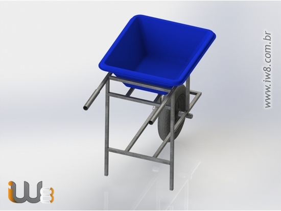 Carrinho de Mão para Masseira Plástica de 50 Litros Projetado e Fabricado pelo Grupo IW8 de Santa Catarina para ser usado por Pedreiros em Canteiros de Obras da Construção Civil agilizando serviços durante a execução de assentamentos de bloco e tijolo, reboco de parede dentre outros.
