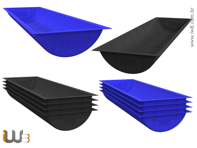 Cochos Plásticos para Gados de Corte, Ovinos, Caprinos, Vacas Leiteiras e outros animais com Capacidade para 250 Litros são usados para trato e suplementação, também podendo ser utilizado como saleiro. São fabricados pela IW8 no processo de rotomoldagem em polietileno de alta densidade com proteção UV.