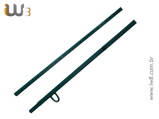 Para Alvenaria de Vedação: Escantilhão com mola e régua para ajuste fino dos prumos, com fixação entre lajes, regulável de 2,10m a 3m