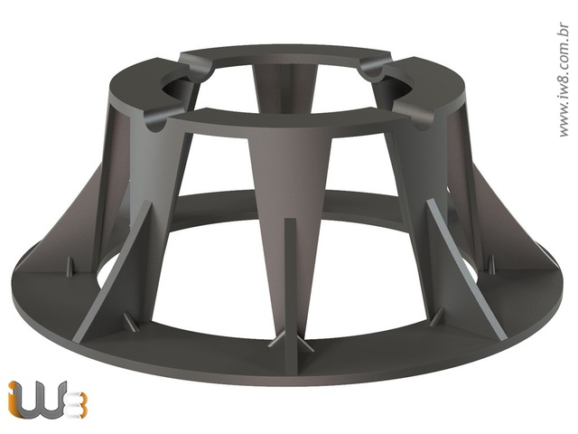 Distanciador Plástico Circular de Apoio reforçado de base circular desenvolvido pelo Grupo IW8 para aplicação na construção de Pisos industriais, mantendo o correto espaçamento de ferragens e cabos de protensão, substituindo treliças metálicas na Construção Civil.