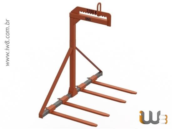 Garfo Paleteiro 4 Lanças 2.200kg Projetado e Fabricado pelo Grupo IW8 em Santa Catarina para Içamento, Transporte e Movimentação de Produtos Materiais em Cargas Paletizadas com Caminhão Munck, Gruas de Torre, Guindastes, Ponte Rolante, Monovias e outros Equipamentos de Guindar.