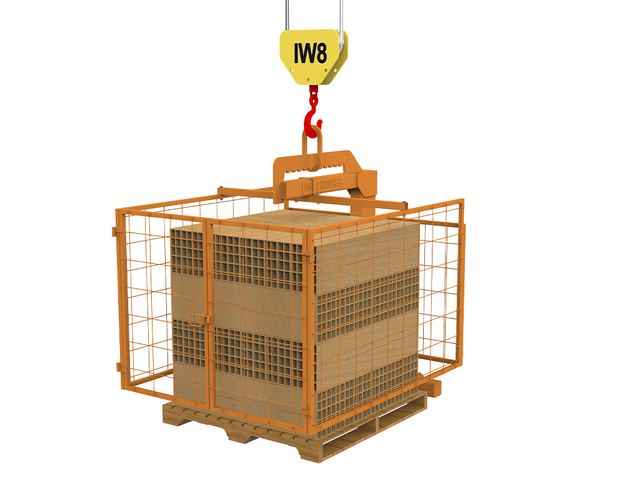 Garfo Paleteiro 2ton com Gaiola 1,2m Projetado e Fabricado pelo Grupo IW8 em Santa Catarina para Içamento, Transporte e Movimentação de Produtos Materiais em Cargas Paletizadas com Caminhão Munck, Gruas de Torre, Guindastes, Ponte Rolante, Monovias e outros Equipamentos de Guindar.