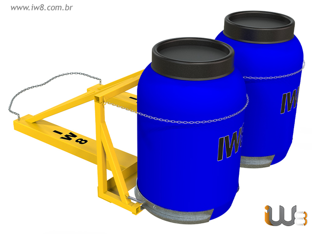 Garra Mecânica Dupla é possível o transporte de dois tambores plásticos, o travamento é feito por correntes, garantindo maior segurança no manuseio de Bombonas Plásticas.
